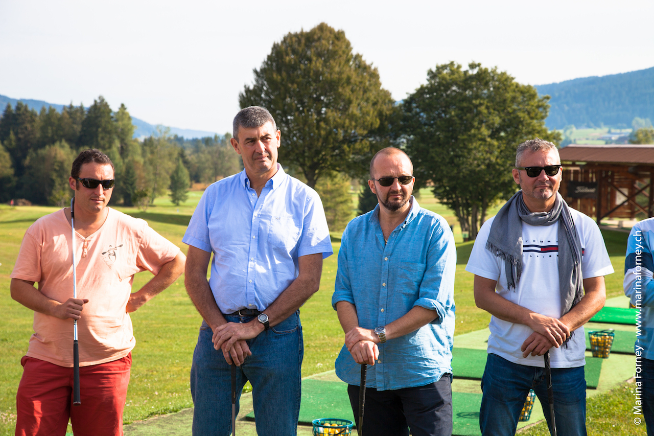 Jean-Marie Bourget, Küchenchef vom Golfrestaurant in Voëns / St. Blaise, empfing uns zum Mittagessen rund um die Erzeugnisse der Produzenten des Tages. Die Weine von Jean Daniel Giauque, Winzer in La Neuveville, haben unsere Gaumen erfreut. Die Übereinstimmung vom Wein „Gentil Rhin" mit den Käsen aus dem Hause „La maison du fromage" aus Neuenburg, vertreten durch Cédric Naudin, war genial. Ein solches Essen konnte nicht ohne „une douceure" in Form von Schokolade, durch Julien Badet von Jacot Chocolatier SA in Noiraigue überbracht, beendet werden.