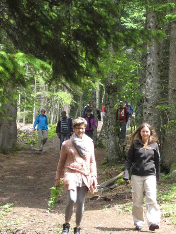 Von dort sind wir durch Wiesen und Wälder, unter kundiger Anführung von Joël, der uns die essbaren Pflanzen zeigte, erklärte und zum Probieren herumreichte, Richtung Villars gewandert. Er erklärte uns den Unterschied zwischen der Riesen-Bärenklaue oder Herkulesstaude ( giftig und verursacht Verbrennungen !) von der Wiesen-Bärenklaue oder Gemeine Bärenklaue, der frische-säuerliche „Granny Smith“-Geschmack vom Sauerklee, der Echte oder Wiesenkümmel, der Gundermann (der für viele ein Unkraut im Garten ist), und, dass da wo es Brennnessel (Suppen, Wähen, Salat) hat, auch Spitzwegerich ( stoppt das brennen der Brennnessel ), vorkommt.