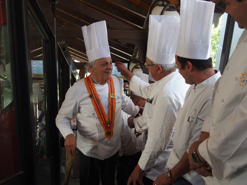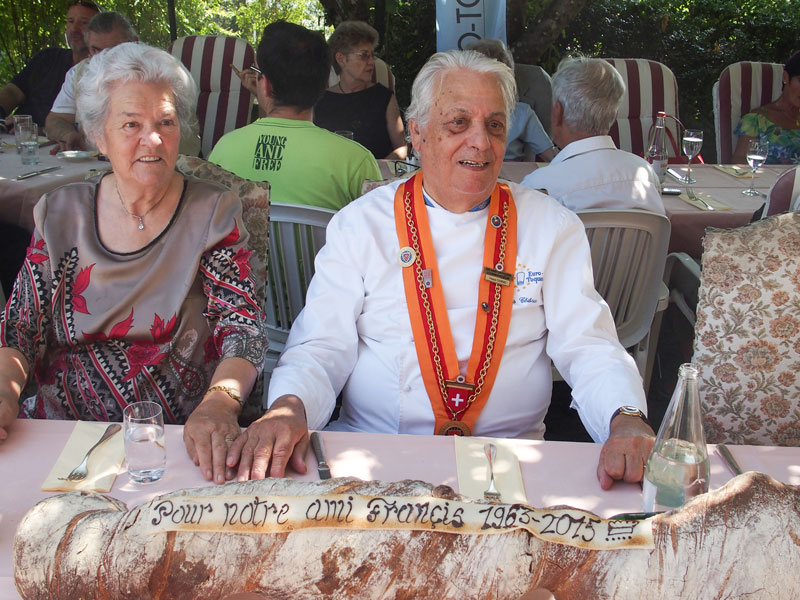 Der Tag geht in Ihrer Hôstellerie weiter mit einem Buffet und Grilladen, organisiert mit der Hilfe der Sponsoren von Euro-Toques. Der Nachmittag vergeht gemütlich, begleitet von unserm Musiker Dany Solo, mit dem auffrischen der Erinnerungen Ihrer Karriere. Der Tag endet umgeben von Ihren Kindern und Grosskinder.
