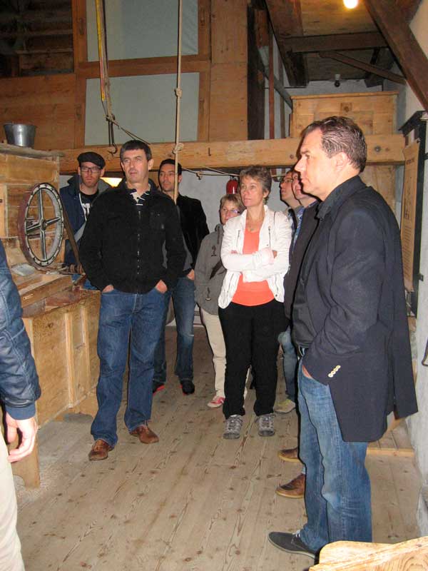 Le rendez-vous était pris au « Moulin de Semblanet » à Martigny-Combe. M. Bersier nous fit visiter ce moulin du XIX, classé monument historique, et qui est encore en état de marche.