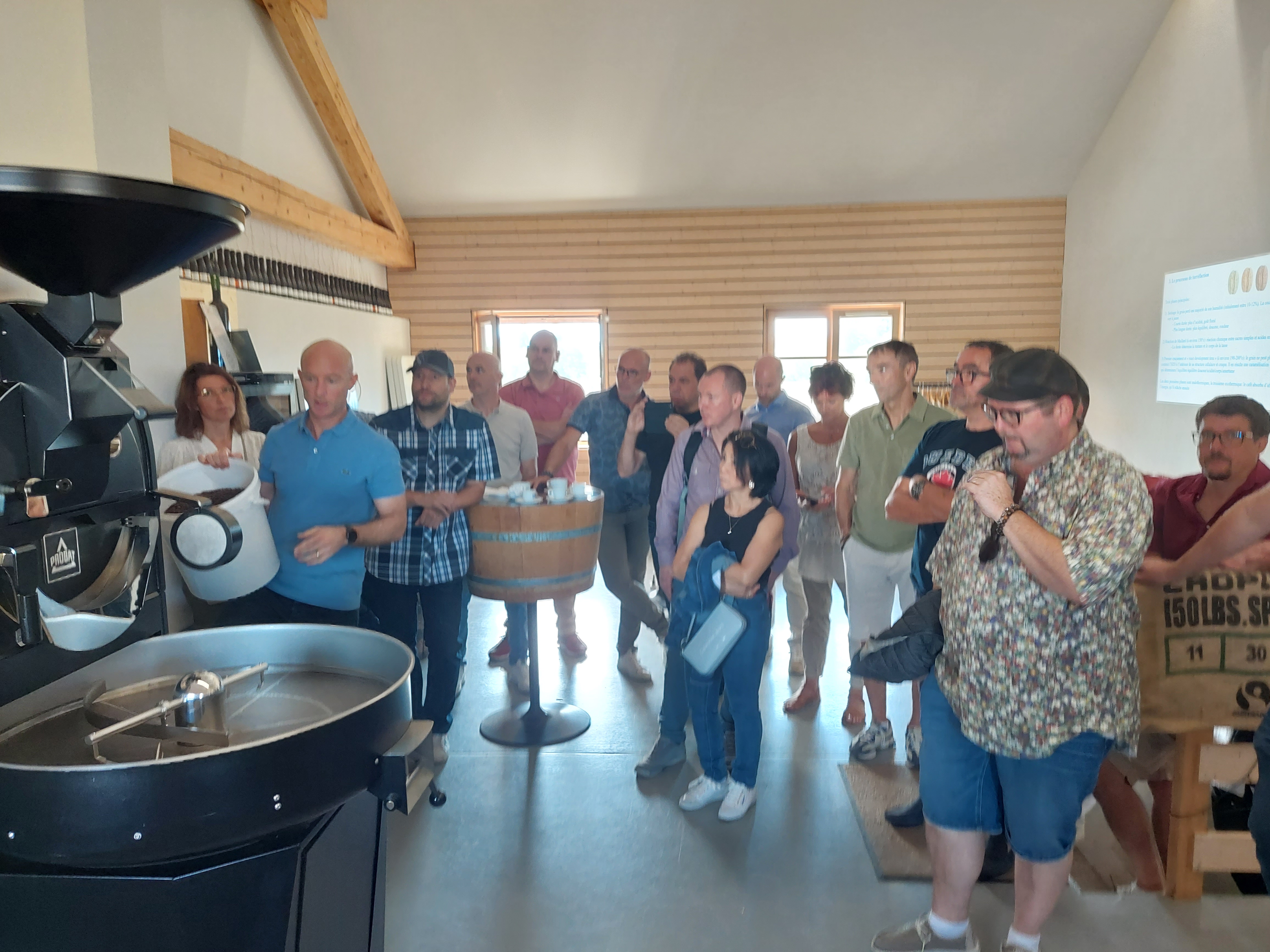 Pour la rencontre de la rentrée, le lundi 4 septembre, les chefs Euro-Toques se sont rencontrés à Soral dans la campagne genevoise. Après un café d'accueil à la torréfaction de Blue Planet, torréfacteur artisanal de café bui et équitable, les membres ont découvert les coulisses de la torréfaction éco-responsable.