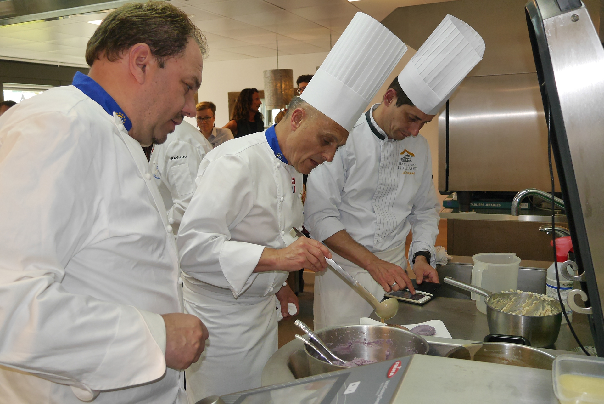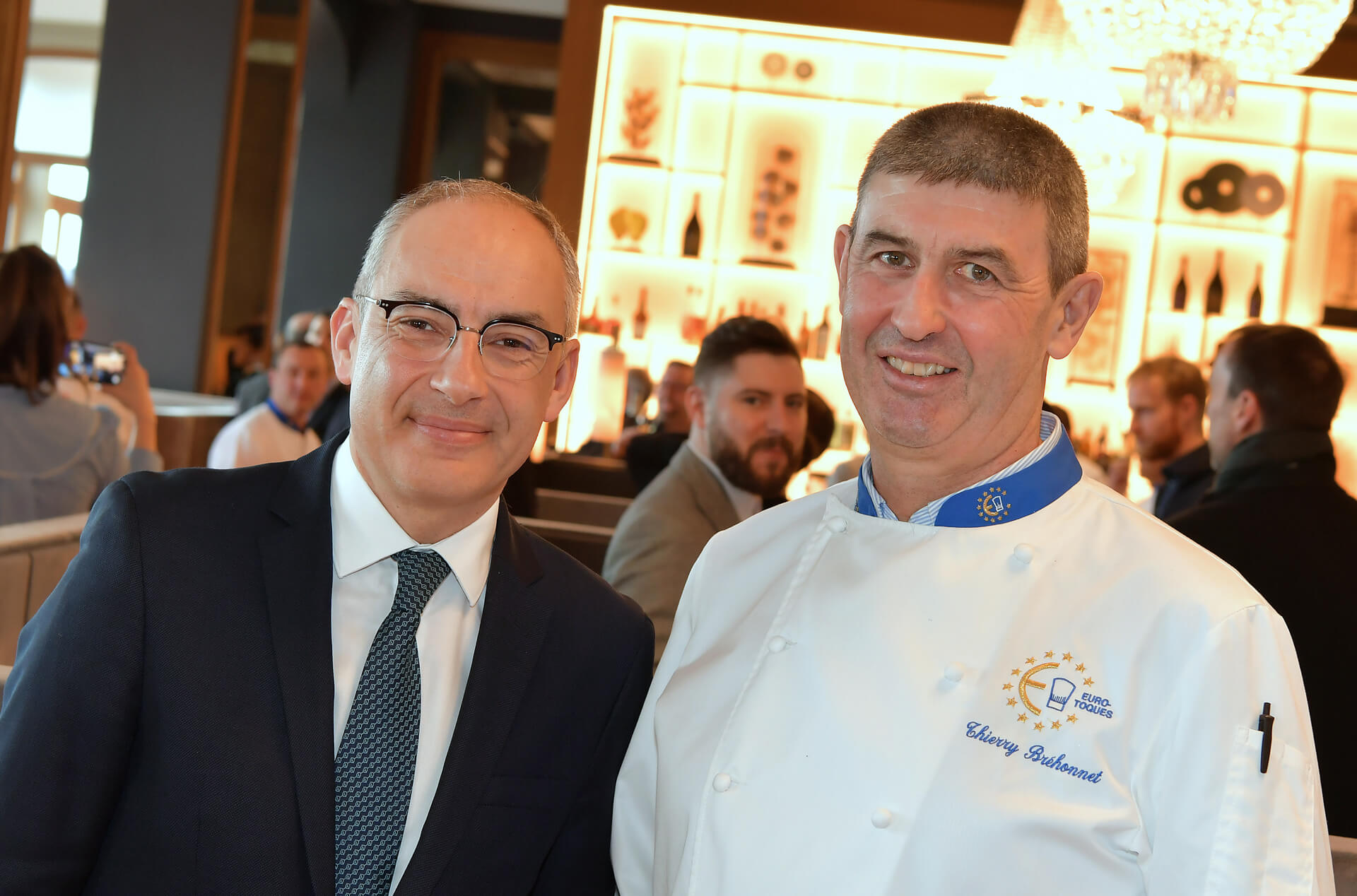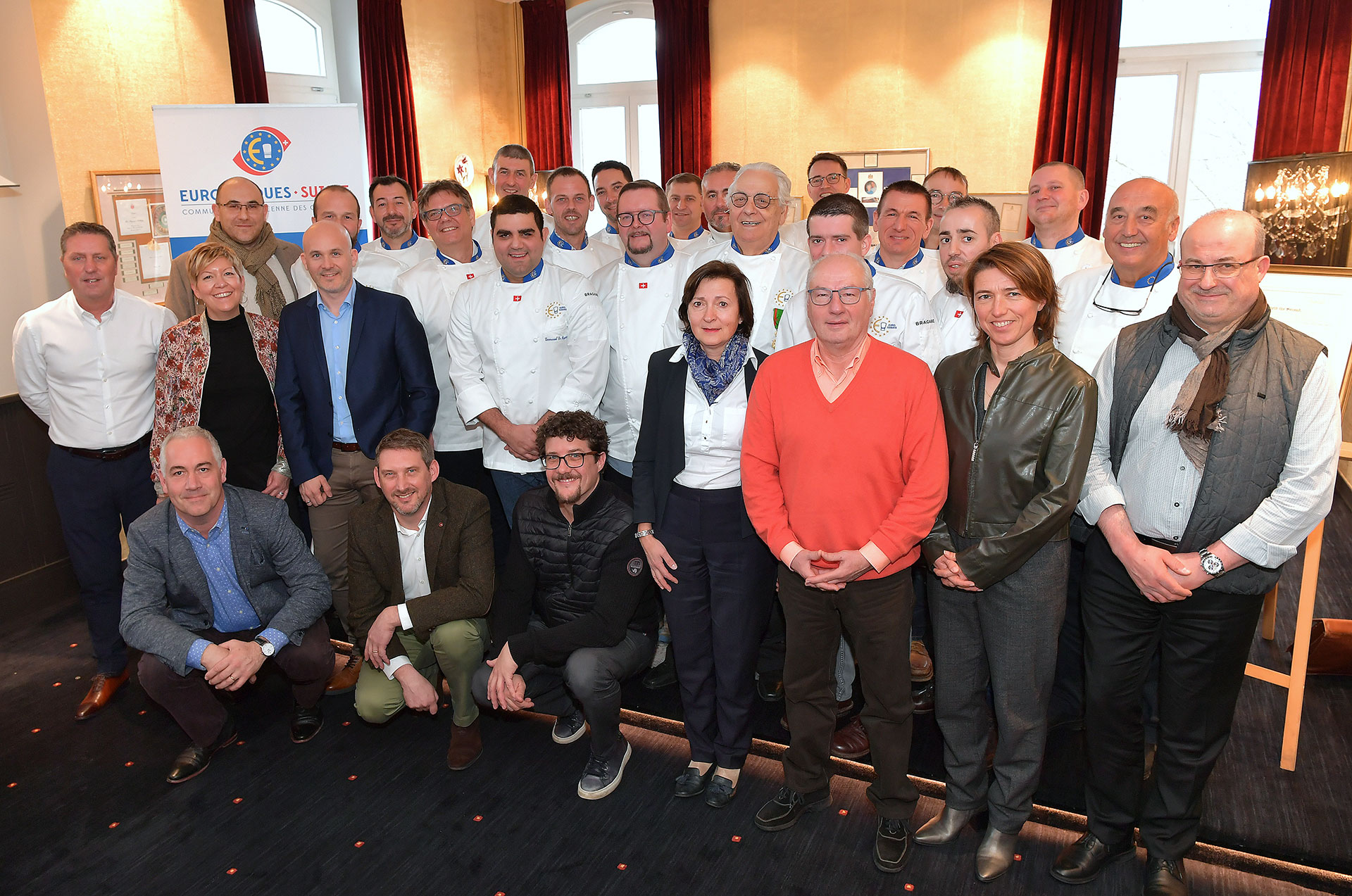 Les chefs Guillaume Gomez du palais de l'Elysée, Michel Roth de l'Hôtel Ritz à Paris et de l'hôtel Président Wilson à Genève, membres du « Comité des sages » nouvellement élu, ont fait une intervention pour rappeler le caractère spécifique de notre association qui est la défense des produits du terroir à Bruxelles.