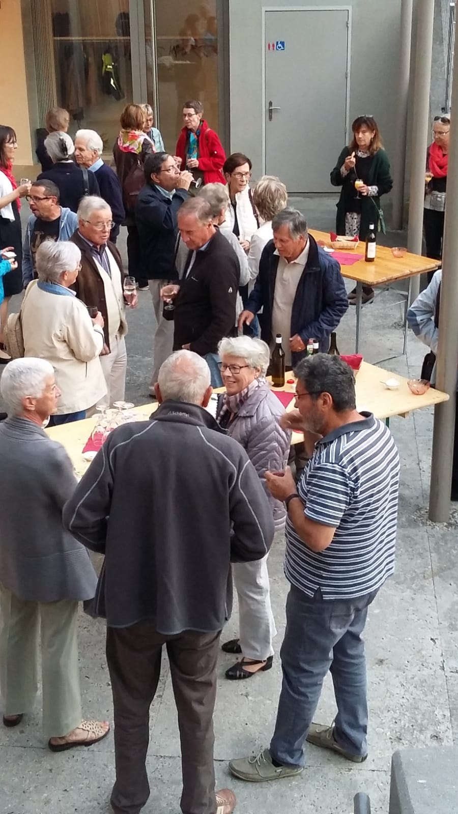 Plan-Cerisier, magnifiques paysages sur les hauteurs de ce petit hameau par un soleil d'automne qui faisait rayonner les couleurs. Madame Besse nous accueillait au « plus petit mazot-musée de Suisse » où les anecdotes nous fût conté et raconté sur les jolis noms de ces ruelles rappelant « Paris » et les chamaillades d'antan, avec en plus un panorama extraordinaire sur Martigny. Florian Besse, vigneron du lieu, nous proposa une dégustation de ces meilleurs cru sous le soleil valaisan.