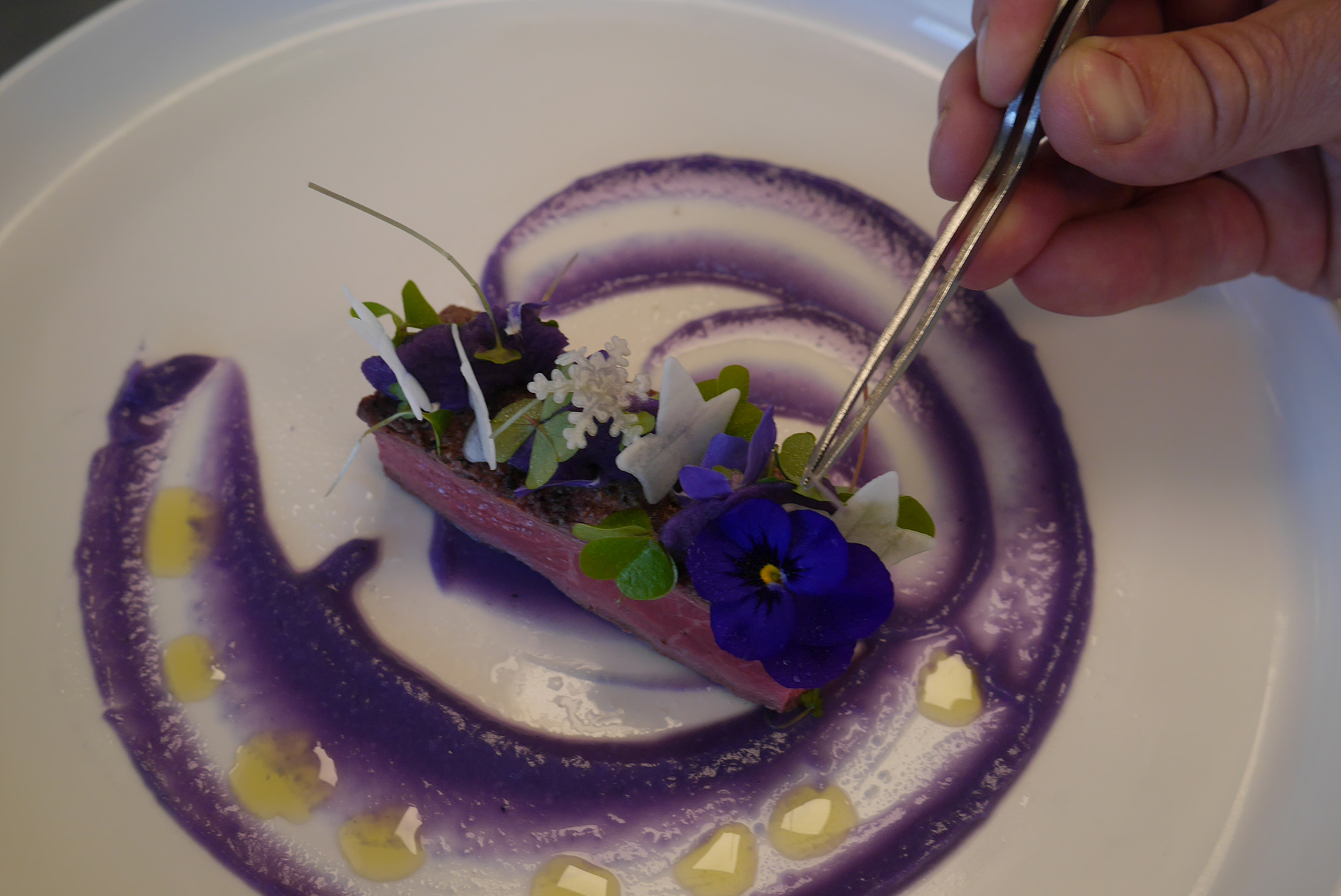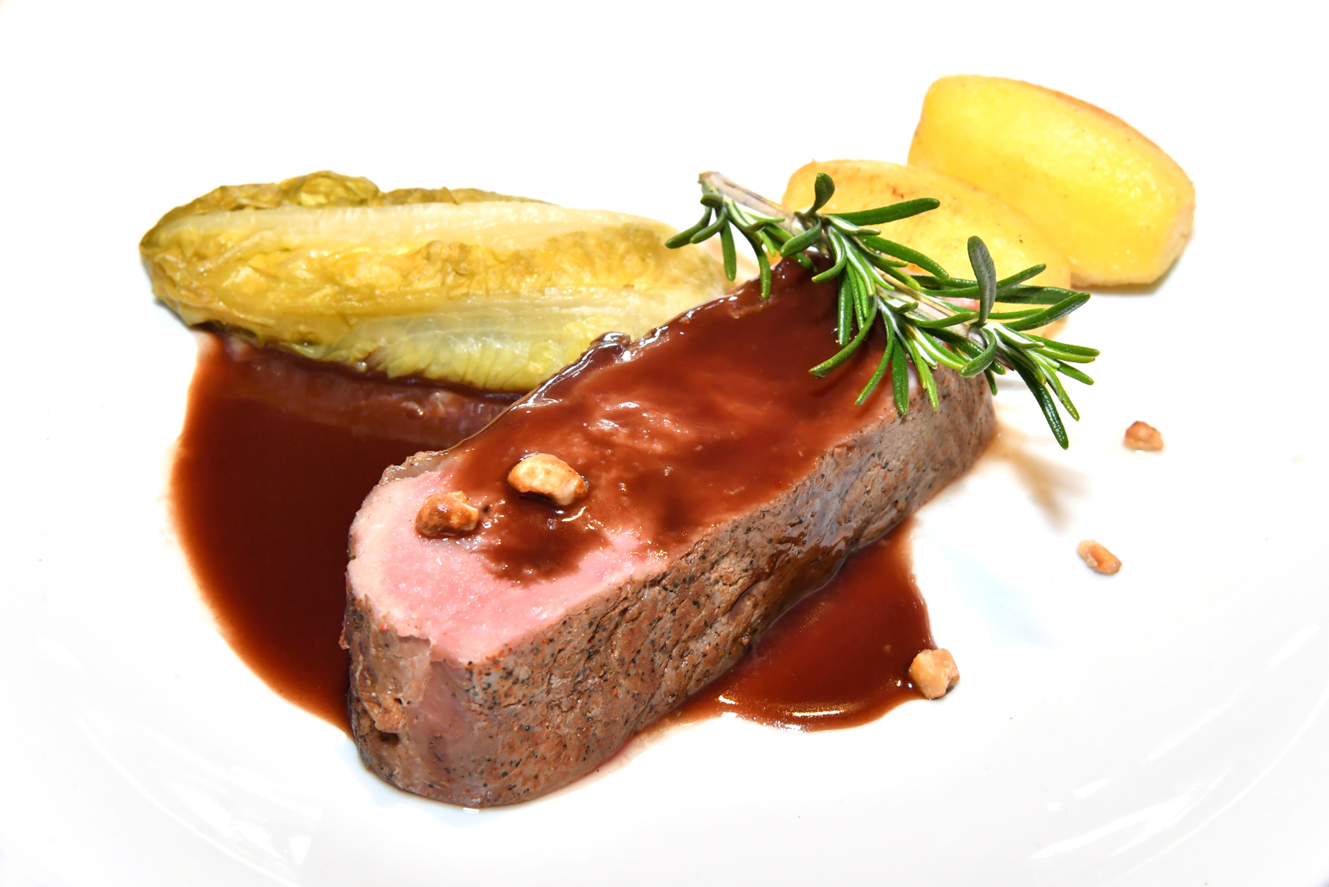 Morceaux noble de bœuf Limousin de Blonay, variation de chou rouge et châtaignes, sauce courte aux appétits