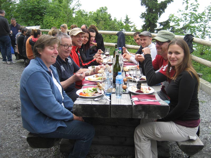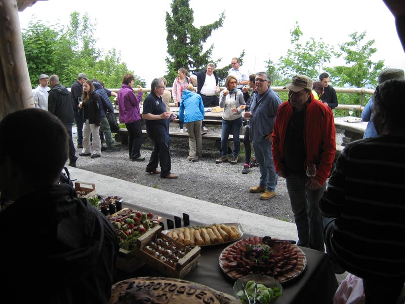 Rendez-vous était donner à l’Auberge de Gy chez Marie –Jo, ou nous attendait M. Daniel Fonjallaz de la cave de la Chêna, www.cavedelachena.ch, et Linda de la fromagerie Bruand, www.fromage-bruand.com, pour une dégustation de leurs produits ainsi que des différent échantillonnages vu dans la matinée. Cette journée de découverte et de partage se termina autour du verre de l’amitié.