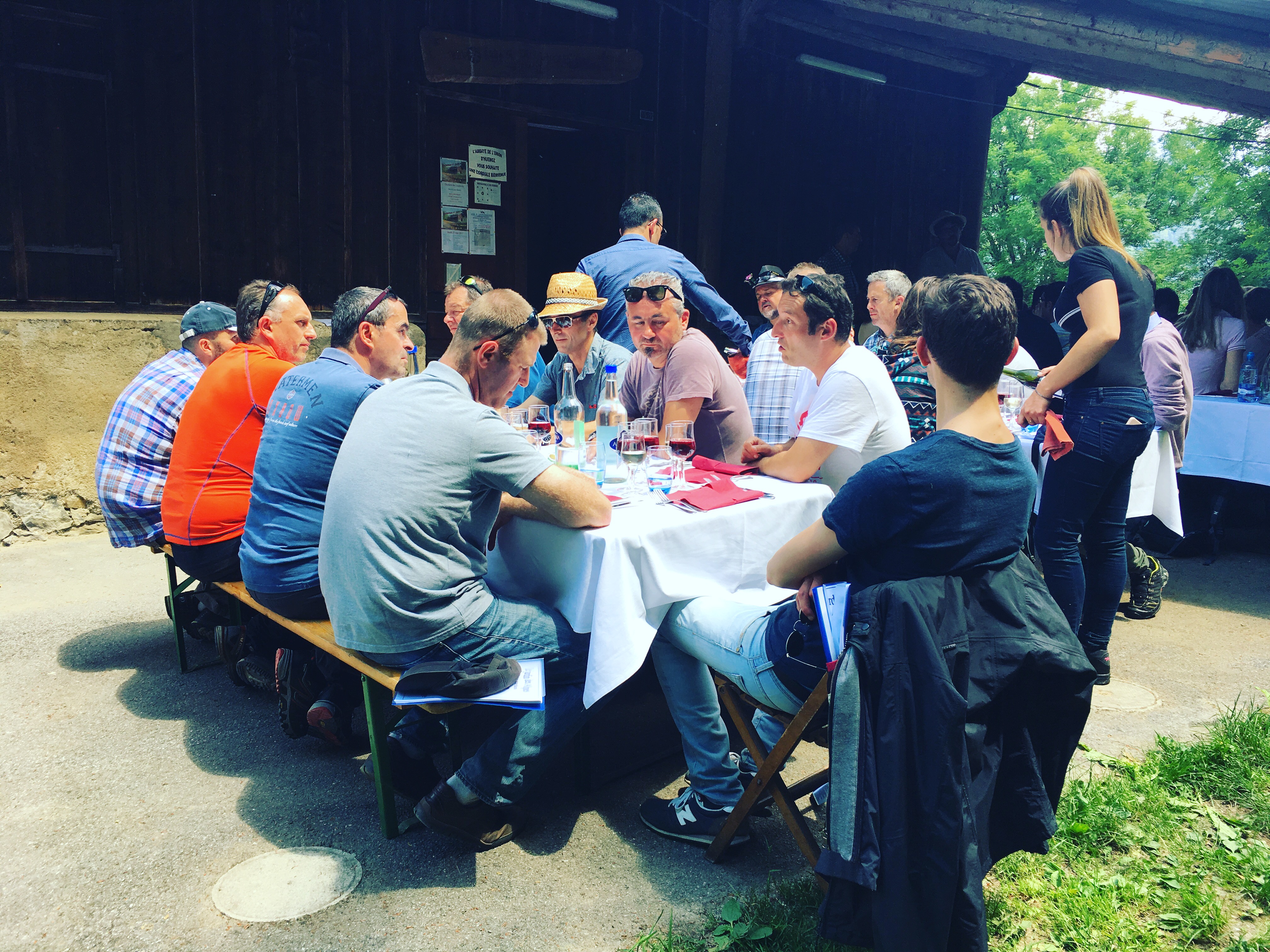 Pour notre sortie de printemps, nous étions partis à la découverte d’artisans producteurs passionnés du terroir neuchâtelois. La journée débuta par la visite de la maison Jural, producteur de jambon cru « Pata Negra » suisse.